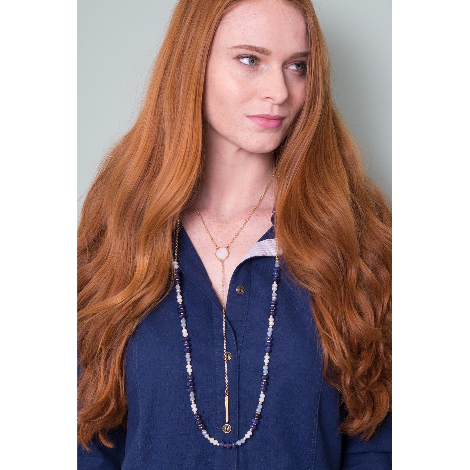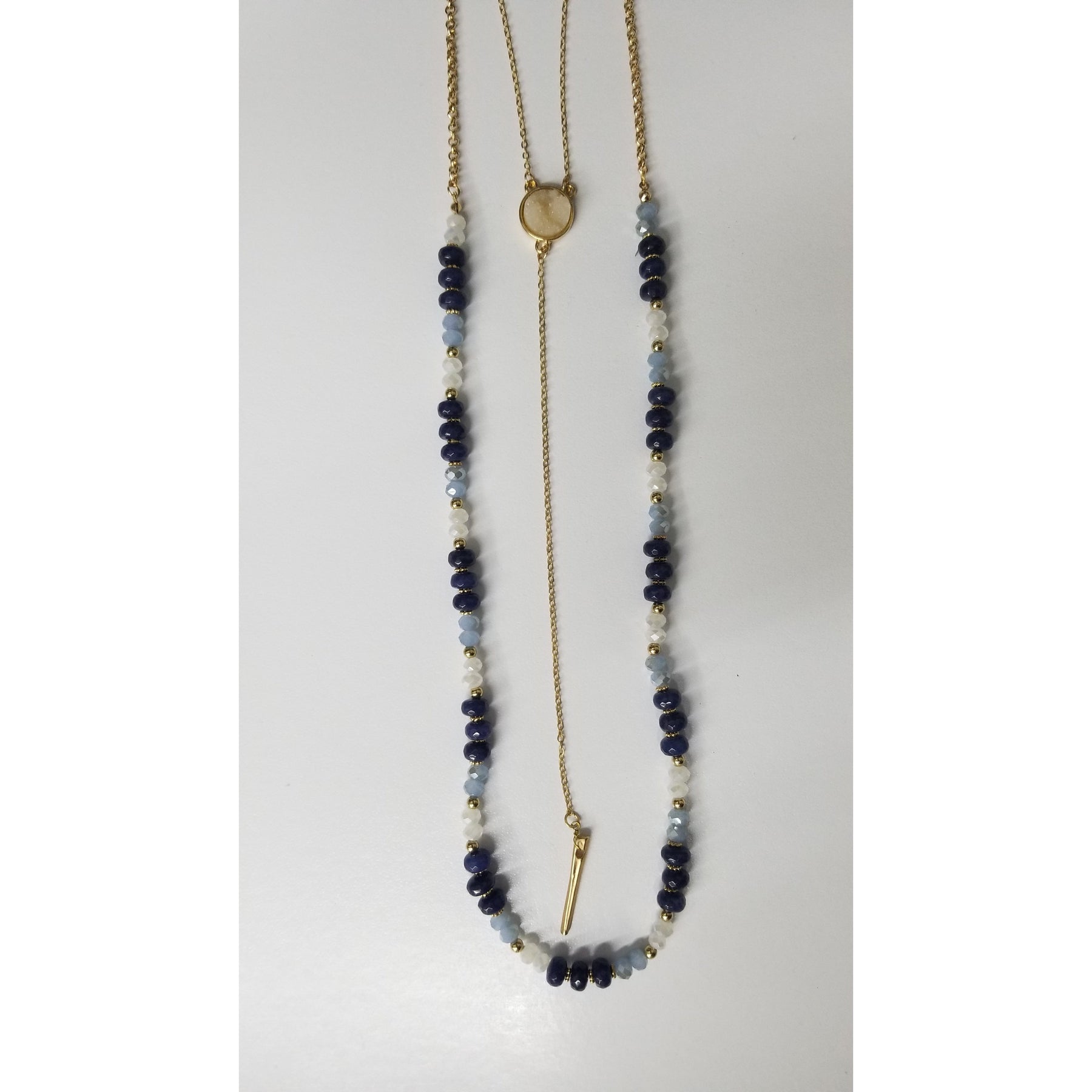 Regular price Save $-32.99This beautiful necklace has a base metal with semi precious stones and faceted glass fire beads that adjusts from 38" to 41".